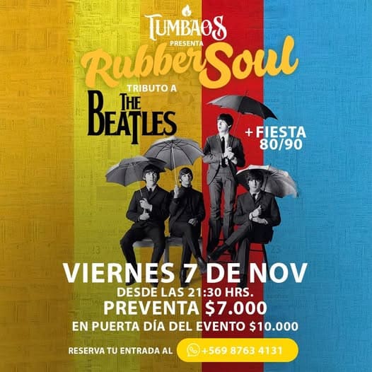 #RubberSoul #TheBeatlesTributo #Fiesta8090 #Tumbaos #ConciertoEnVivo #NocheDeRock #EventosChile #Beatlemania
